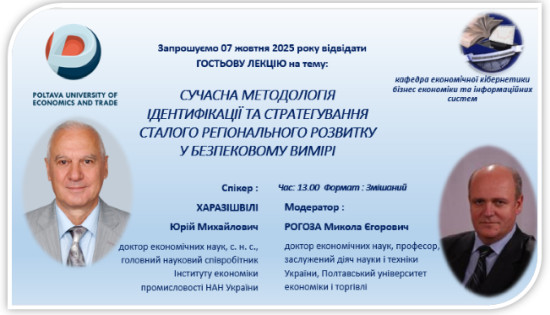Спікером Харазішвілі Ю. М. було підготовлено на результатах проведення наукових досліджень з математичних методів та моделей в економіці, з розробки концепцій сталого розвитку, штучного інтелекту, з моделювання і прогнозування економічних систем, теоретичних основ системного моделювання і прогнозування соціально-економічного розвитку регіонів та економіки України, прочитав гостьову лекцію на тему: «СУЧАСНА МЕТОДОЛОГІЯ ІДЕНТИФІКАЦІЇ ТА СТРАТЕГУВАННЯ СТАЛОГО РЕГІОНАЛЬНОГО РОЗВИТКУ У БЕЗПЕКОВОМУ ВИМІРІ».