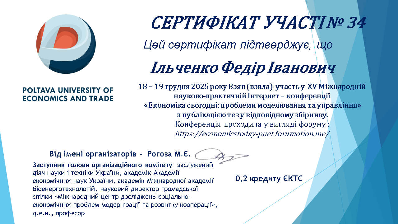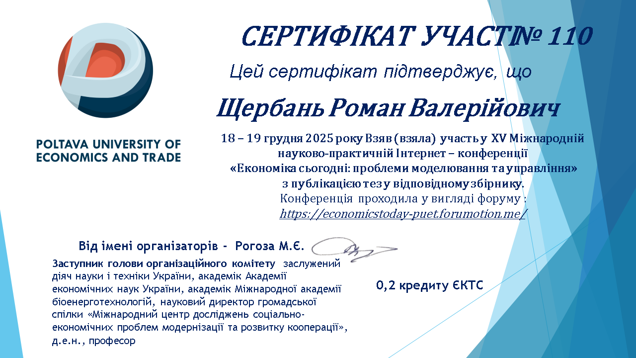 ХІ Міжнародна науково-практична інтернет-конференція «Наука і молодь в ХХІ сторіччі» (до Всесвітнього дня науки в ім’я миру та розвитку, Міжнародного року кооперативів 2025). Полтава : ПУЕТ. 2025. |