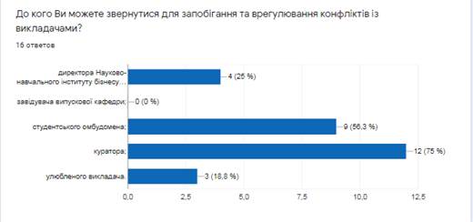 Результати анкетування були обговорені і схвалені на засіданні кафедри економічної кібернетики, бізнес-економіки та інформаційних систем (протокол № 5 від 30.12.2021 р.), вони будуть враховані при покращенні якості освітнього процесу за освітніми програмами «Економічна кібернетика», «Бізнес-економіка», «Економіка підприємства», «Цифрова економіка» та «Менеджмент інформаційних ресурсів». Буде продовжено роботу над причинами часткового задоволення освітнім процесом, а на кураторських годинах, на зустрічах з гарантом буде зроблено акцент на перевагах і можливостях використання ресурсів бібліотеки ПУЕТ і репозитарію, веб-ресурсів для самоосвіти, формуванні індивідуальної освітньої траєкторії при виборі навчальних дисциплін.