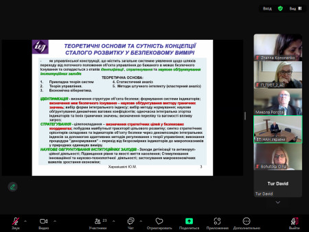 Спікером Харазішвілі Ю. М. було підготовлено на результатах проведення наукових досліджень з математичних методів та моделей в економіці, з розробки концепцій сталого розвитку, штучного інтелекту, з моделювання і прогнозування економічних систем, теоретичних основ системного моделювання і прогнозування соціально-економічного розвитку регіонів та економіки України, прочитав гостьову лекцію на тему: «СУЧАСНА МЕТОДОЛОГІЯ ІДЕНТИФІКАЦІЇ ТА СТРАТЕГУВАННЯ СТАЛОГО РЕГІОНАЛЬНОГО РОЗВИТКУ У БЕЗПЕКОВОМУ ВИМІРІ».