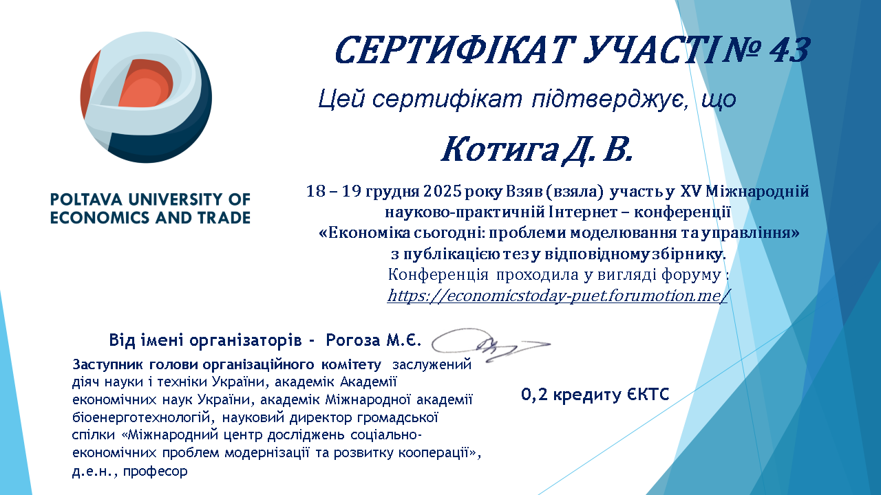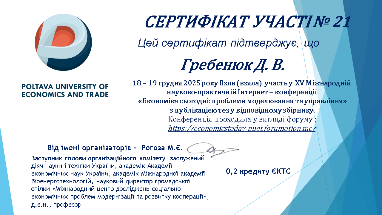 ХІ Міжнародна науково-практична інтернет-конференція «Наука і молодь в ХХІ сторіччі» (до Всесвітнього дня науки в ім’я миру та розвитку, Міжнародного року кооперативів 2025). Полтава : ПУЕТ. 2025. |